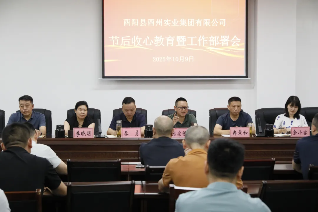 10月9日,節后首個工作日,酉州實業集團組織召開節后收心教育暨工作部署會,集團全體領導班子,各部室、子公司主要負責人參加會議。